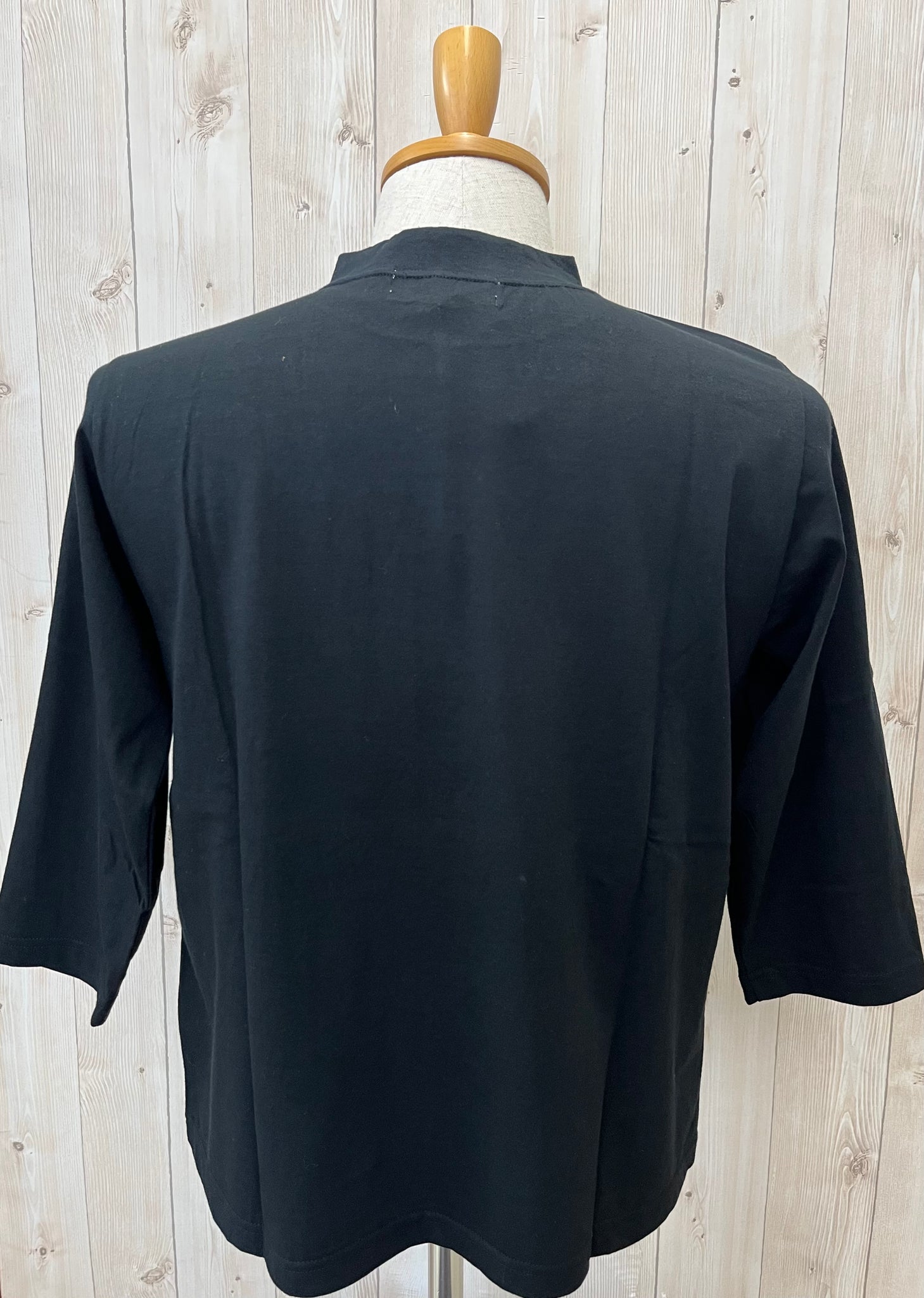 一枚でもインナーとしても重宝するハイネックのシンプルなデザインの7分袖Tシャツです