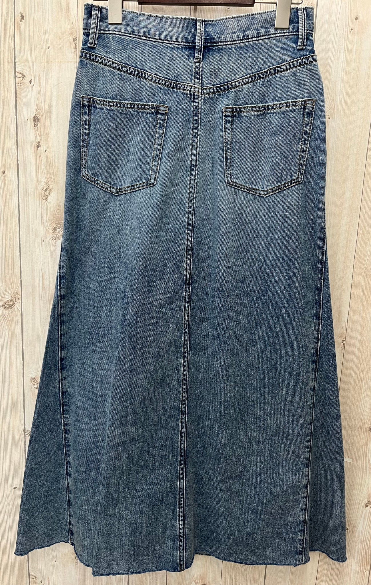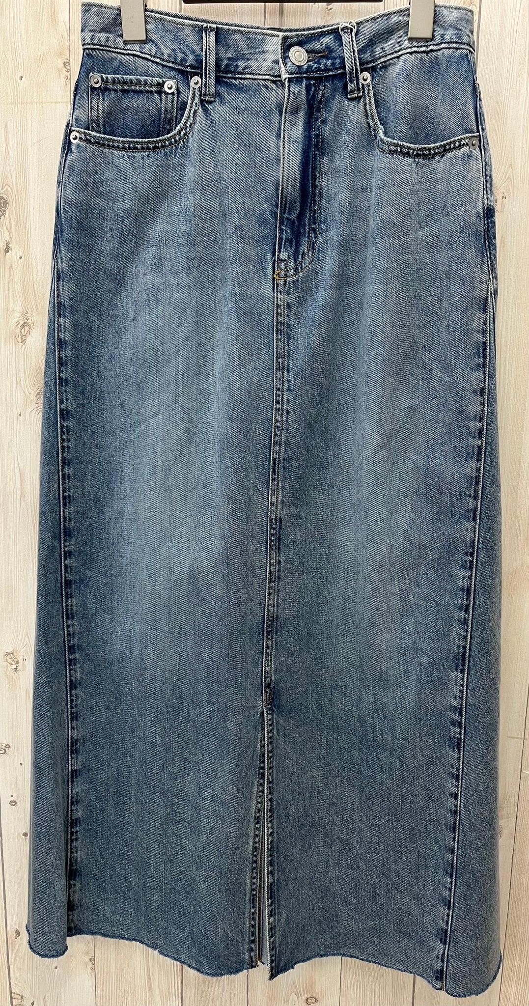 腰周りはスッキリと裾に向かって広がるデニムスカートです