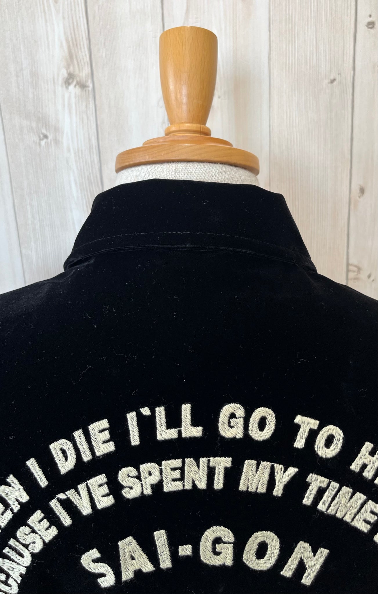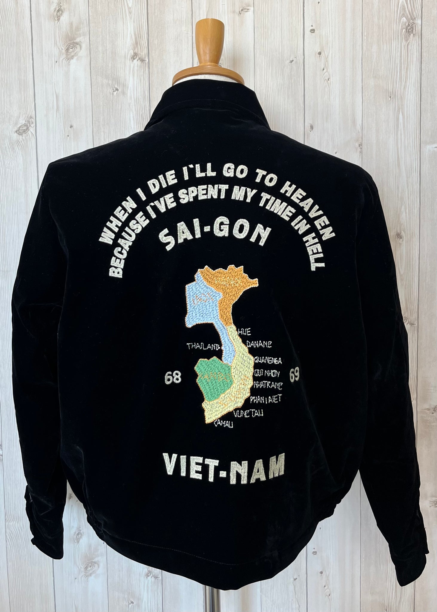 ベトナム戦争当時のものをベースにしたデザインで、虎や竜などの刺繍モチーフが当時の空気感を思わせるオリエンタルな雰囲気の一枚