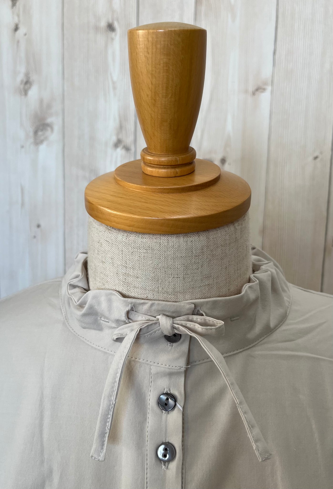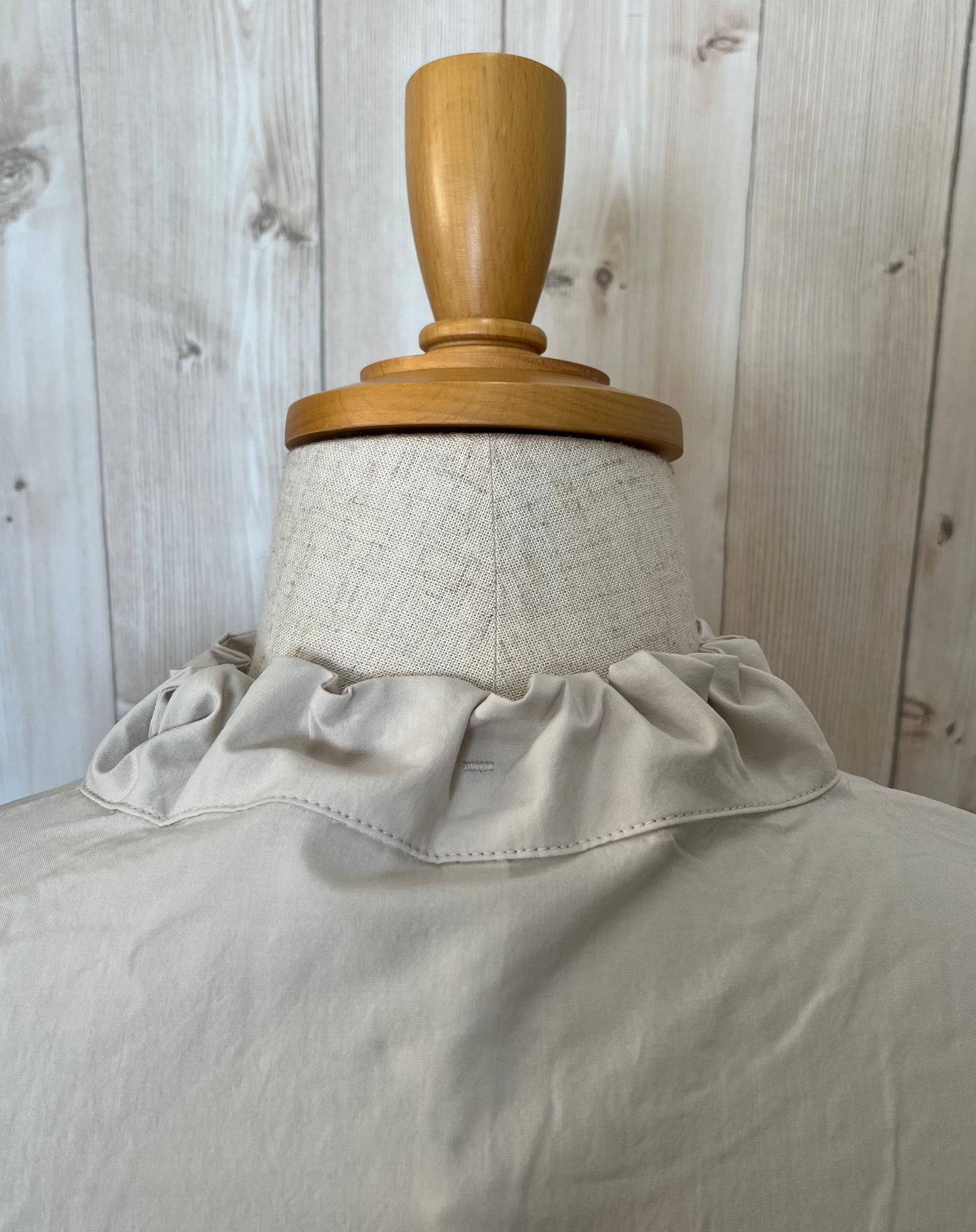 襟上端に沿って通してある共紐で、ギャザーの寄り具合を調整して頂けます