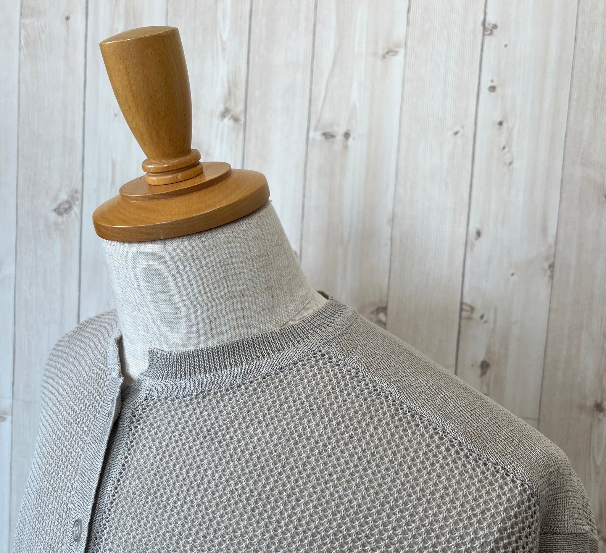 ニットのクルーネックシアーカーデ