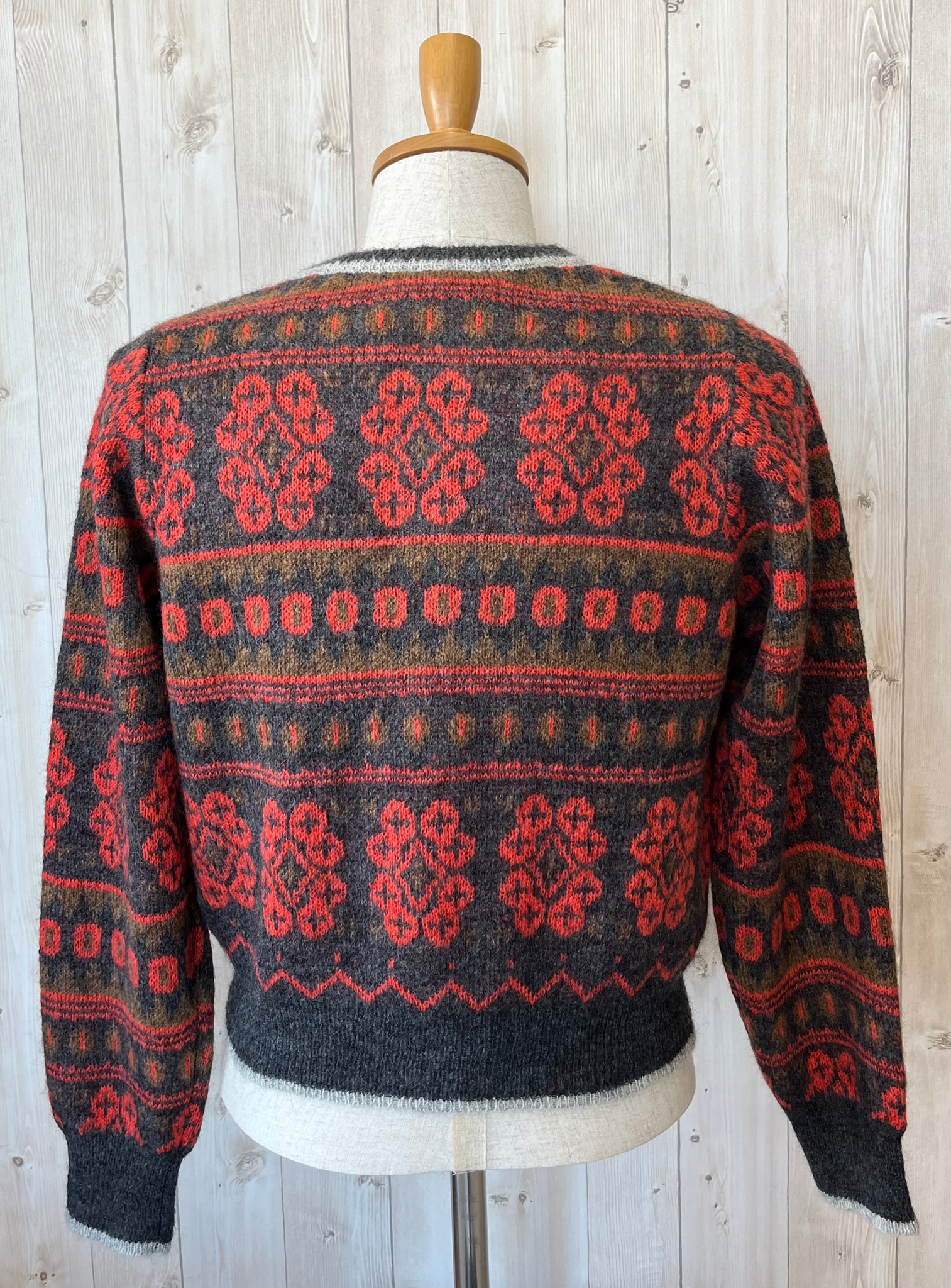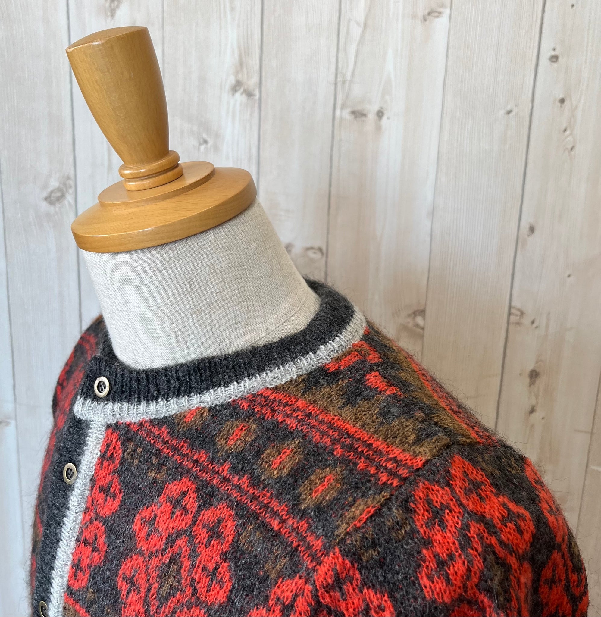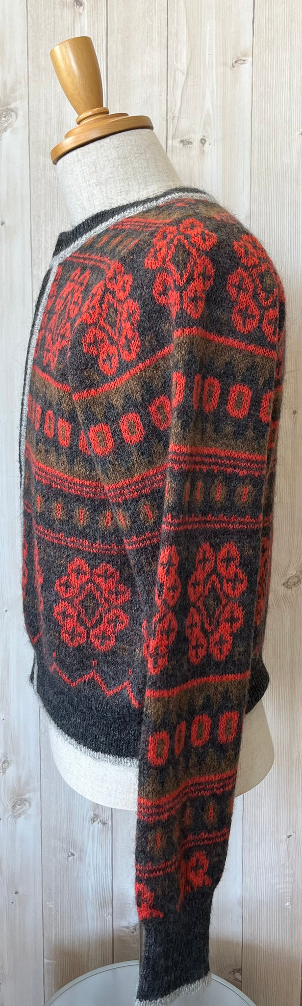 ウールモヘア混の糸を7GGのダブルジャガードで編み上げたニット