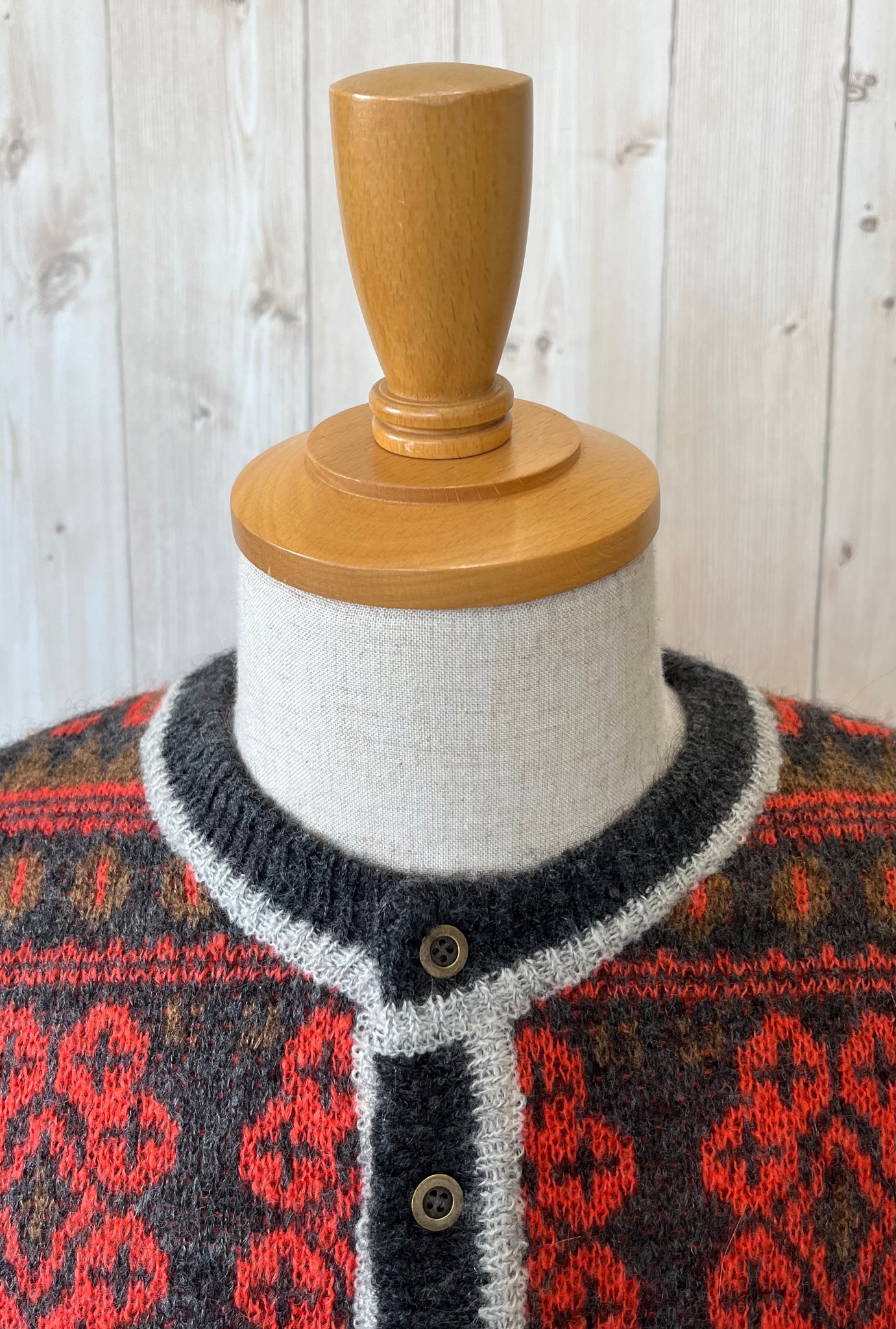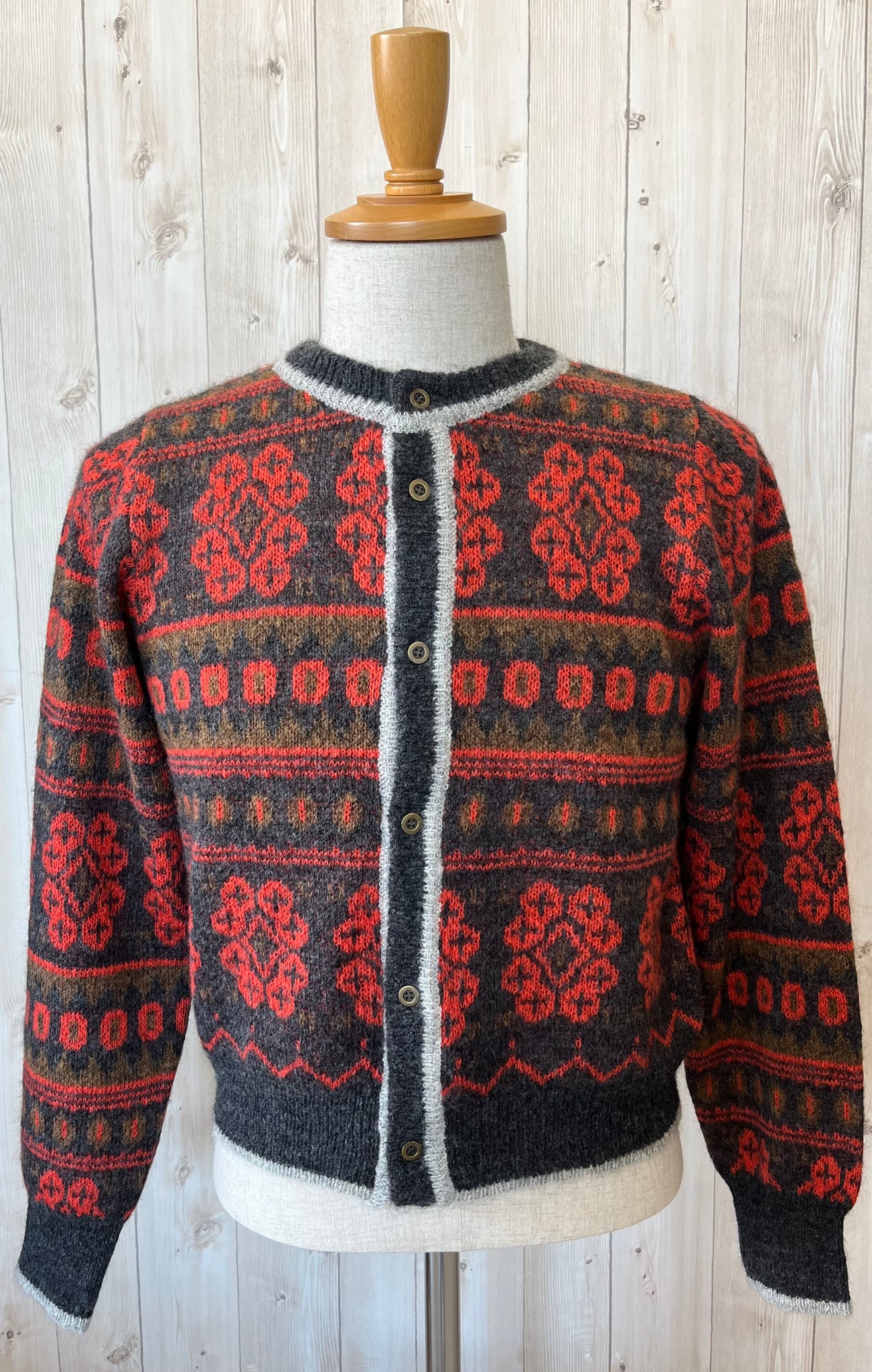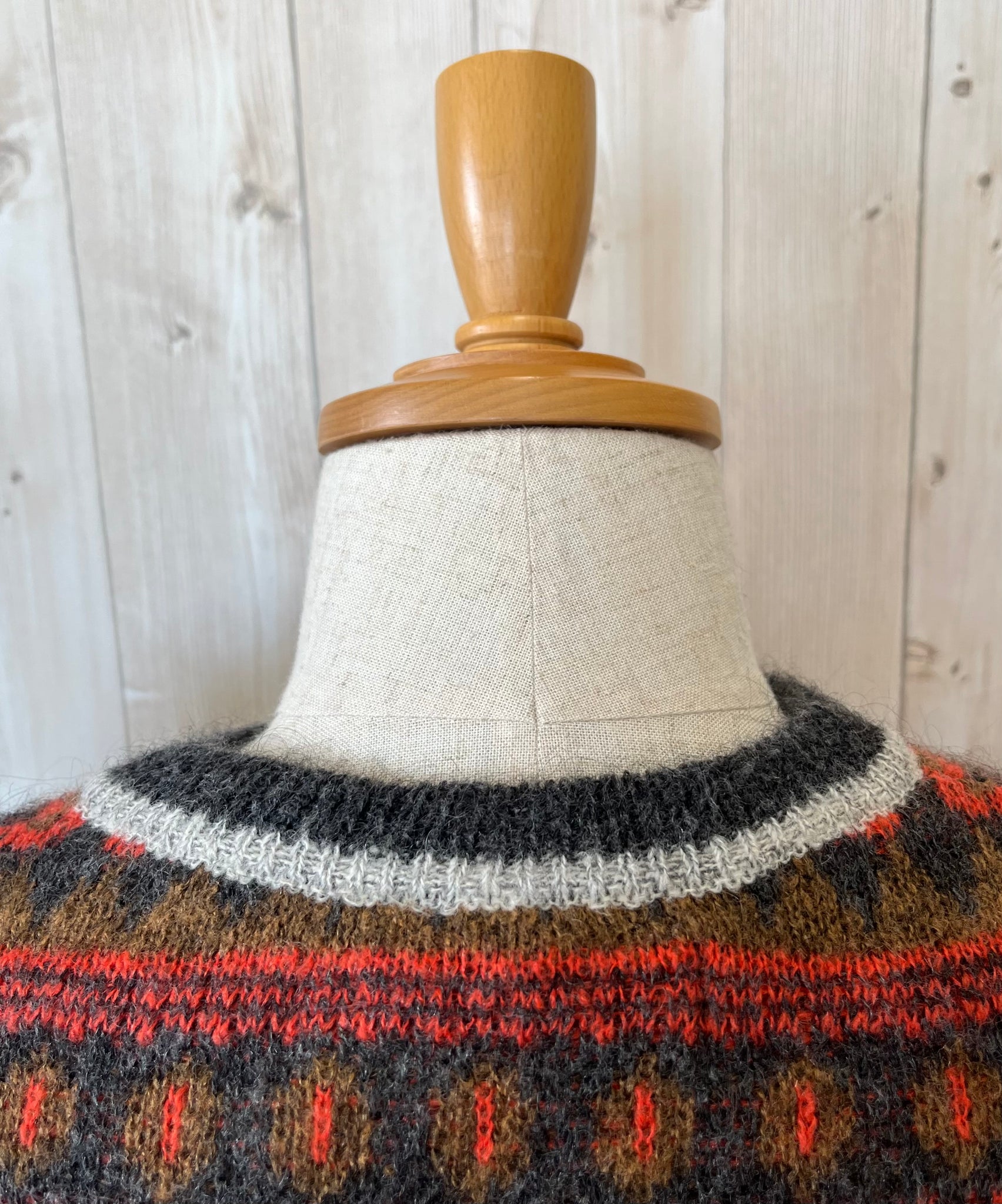 本体は3色使いのフェアアイル風柄で、リブ端はアクセントカラーで配色になっています