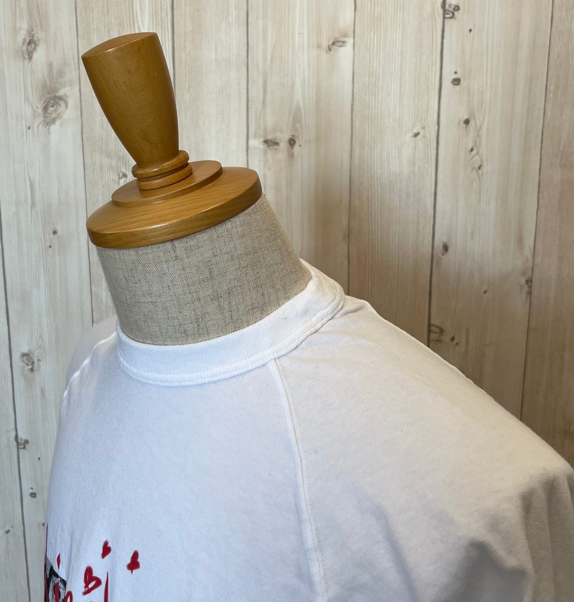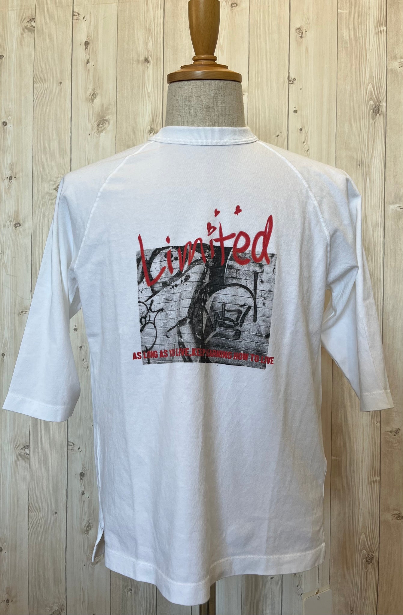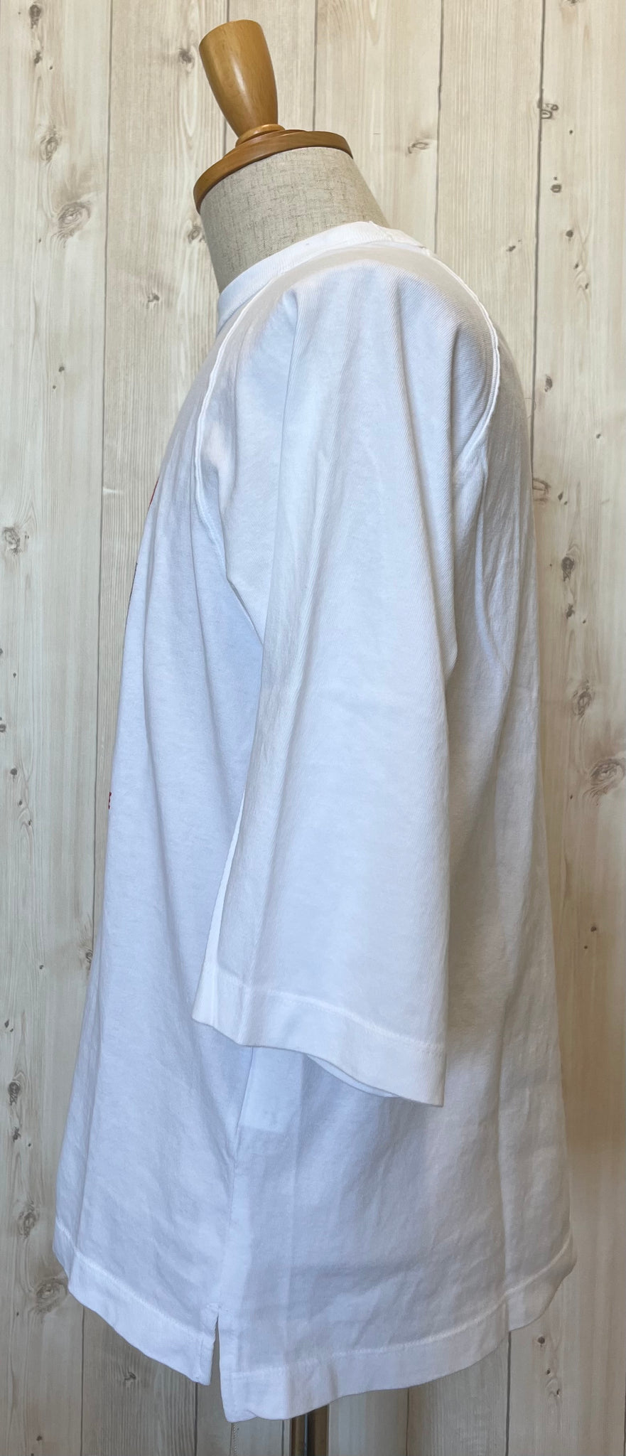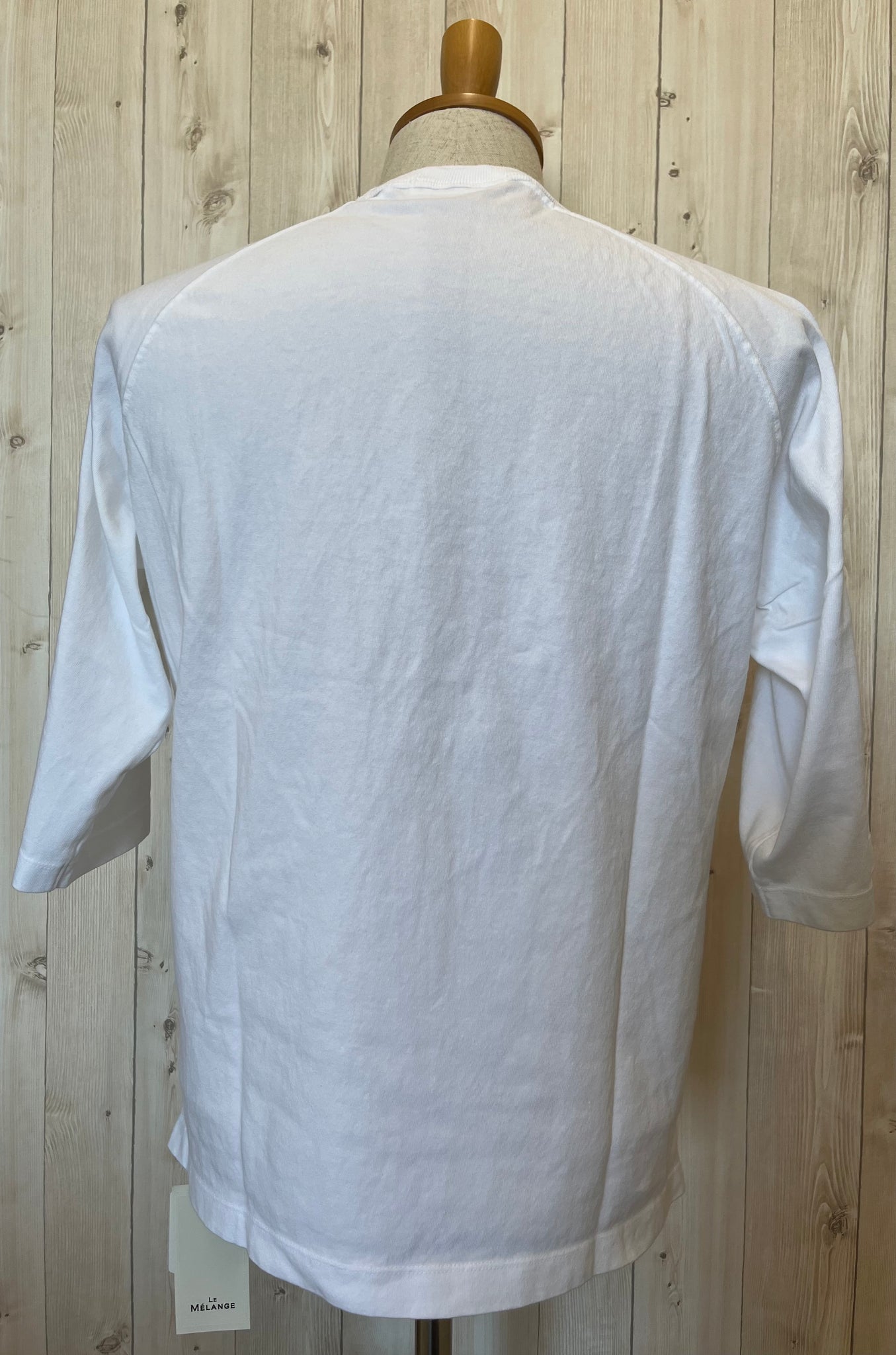 ラグランの7分袖で、後ろ着丈少し長めのゆったりオーバーサイズ