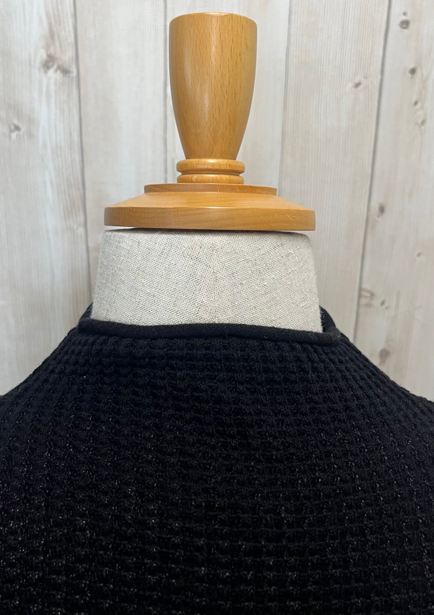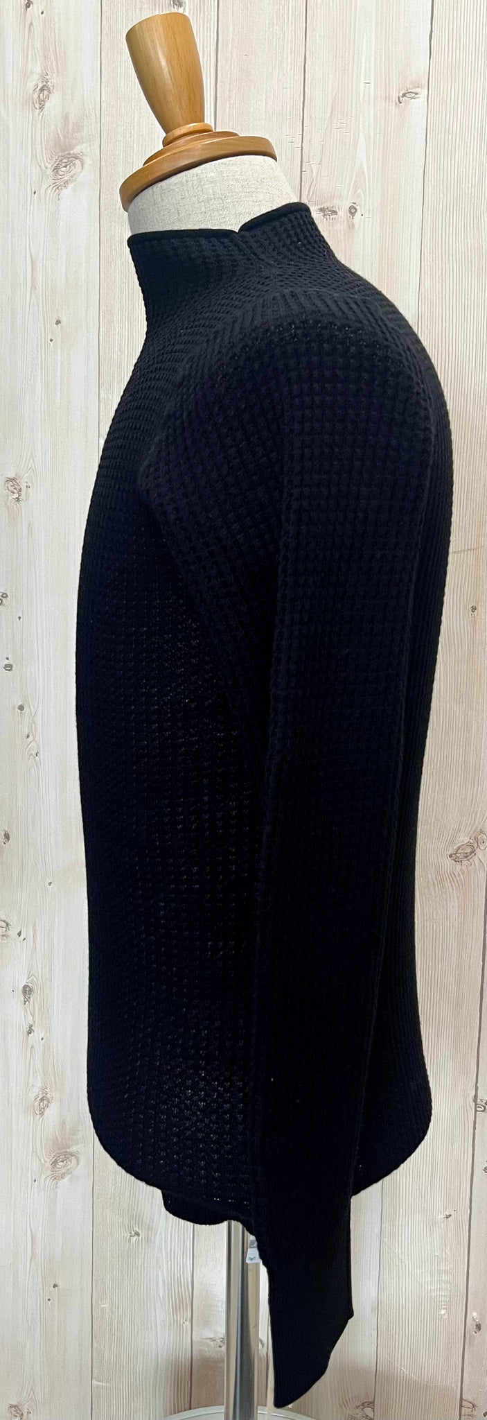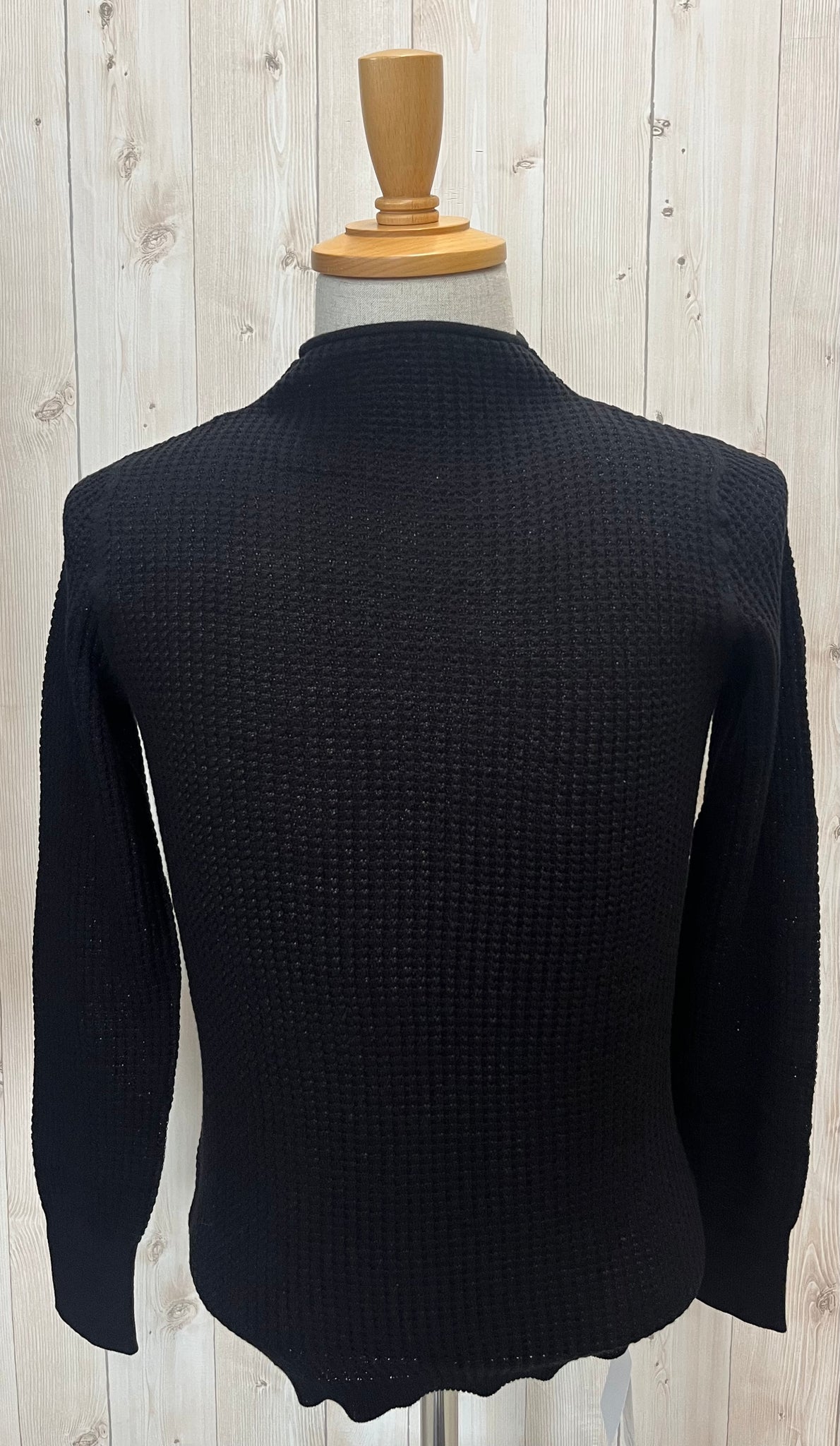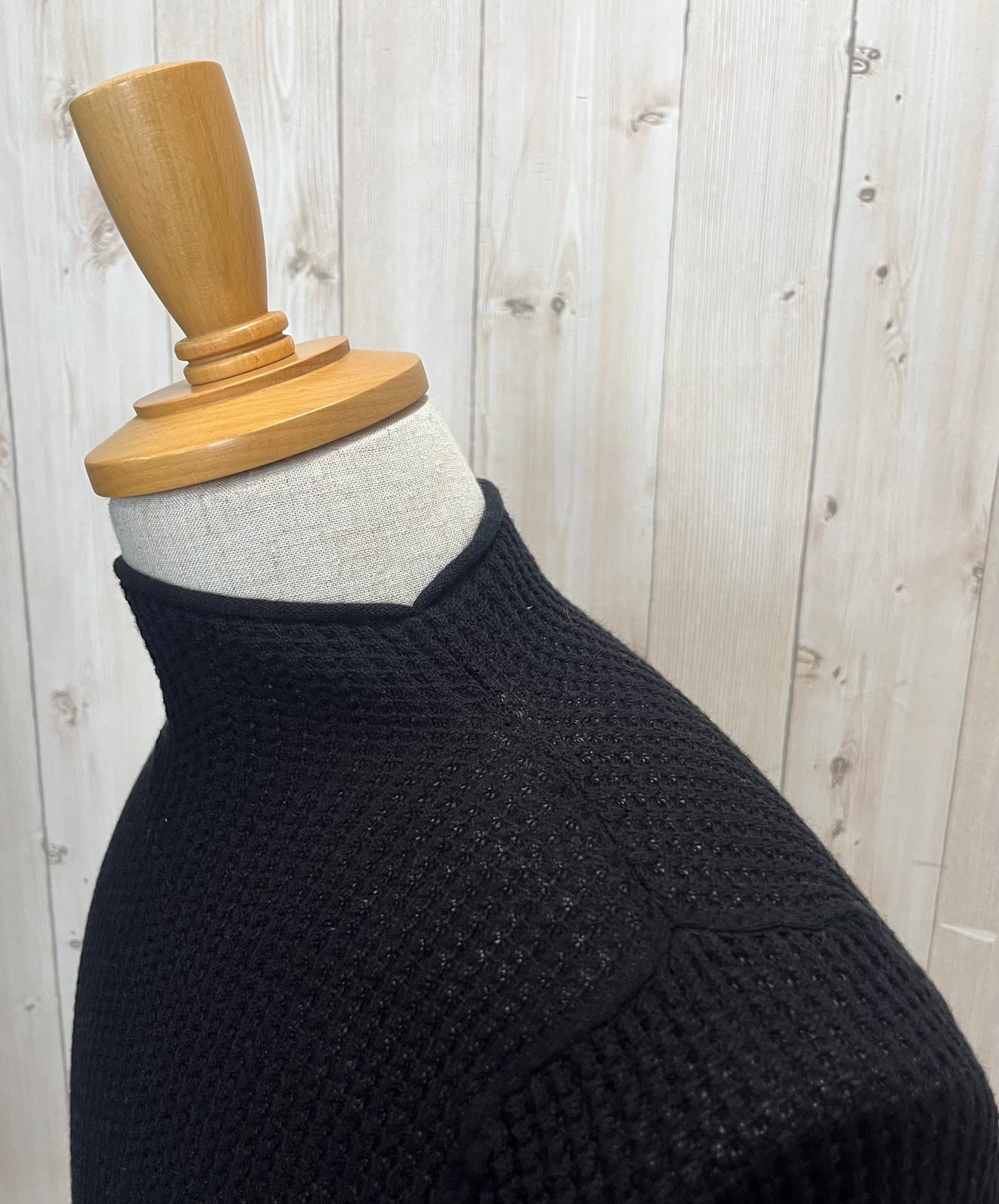やわらかな風合いのコットンの糸を使用し、ハイゲージでワッフル編みにしたモックネックプルオーバーです