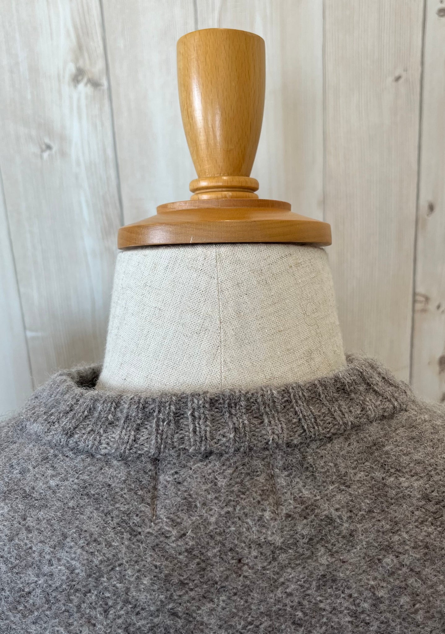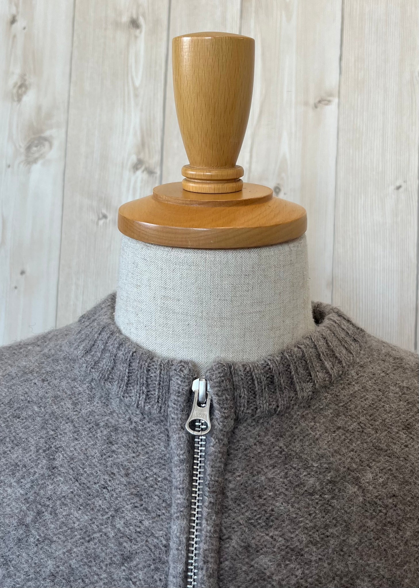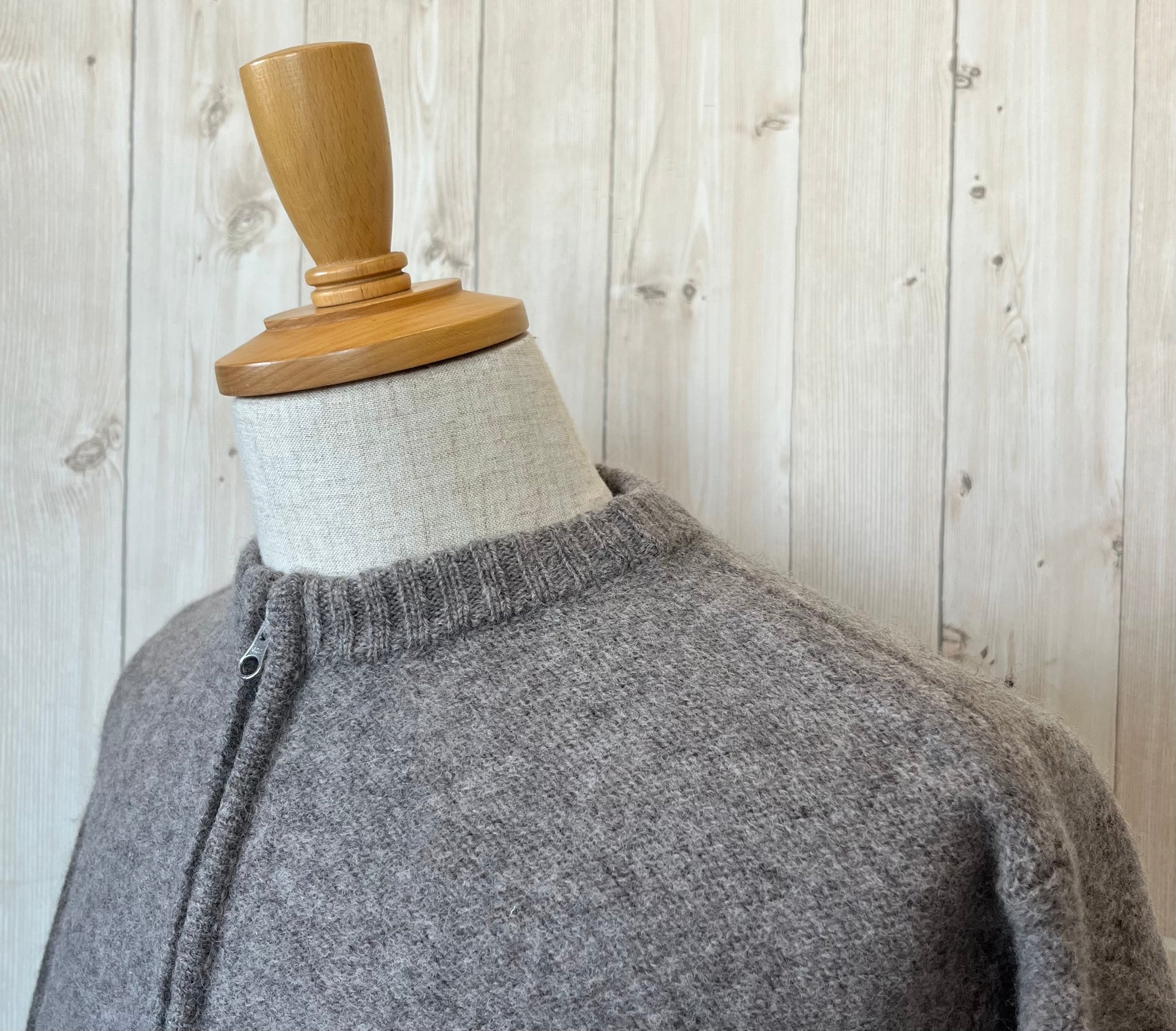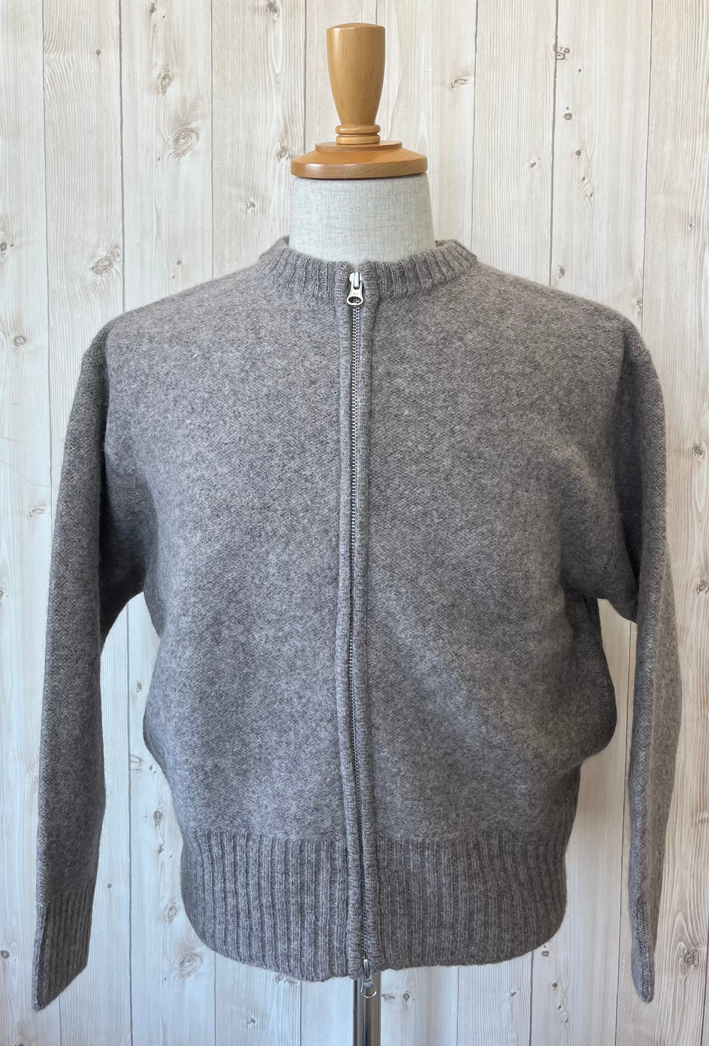 RWS WOOL(羊と土地の管理をした農場で生産された羊毛原料が最終工程まで正しく管理されているかを証明する国際的な認証基準を満たした糸)を使用した編み地に圧縮を掛けたダブルジップクルーネックブルゾンです