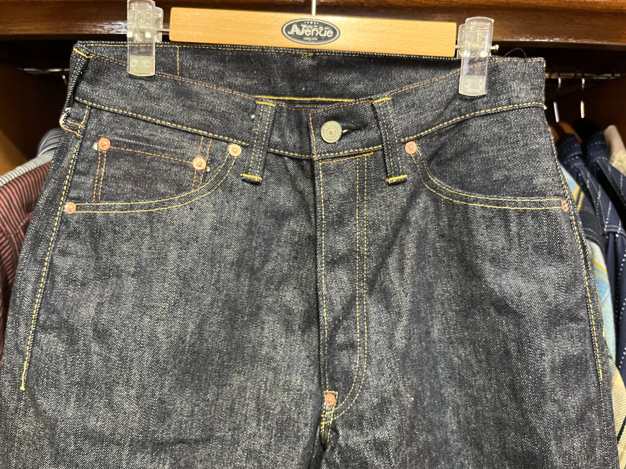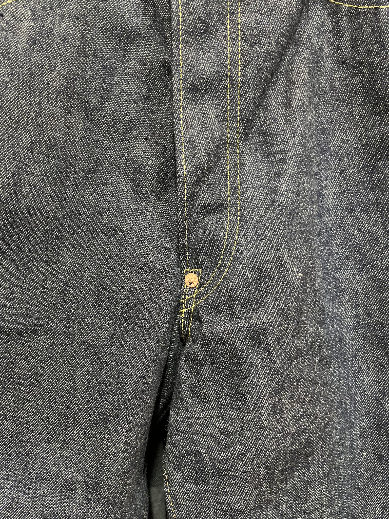 未洗いの為、デニム特有の縮みがでます。御了承下さいませ。